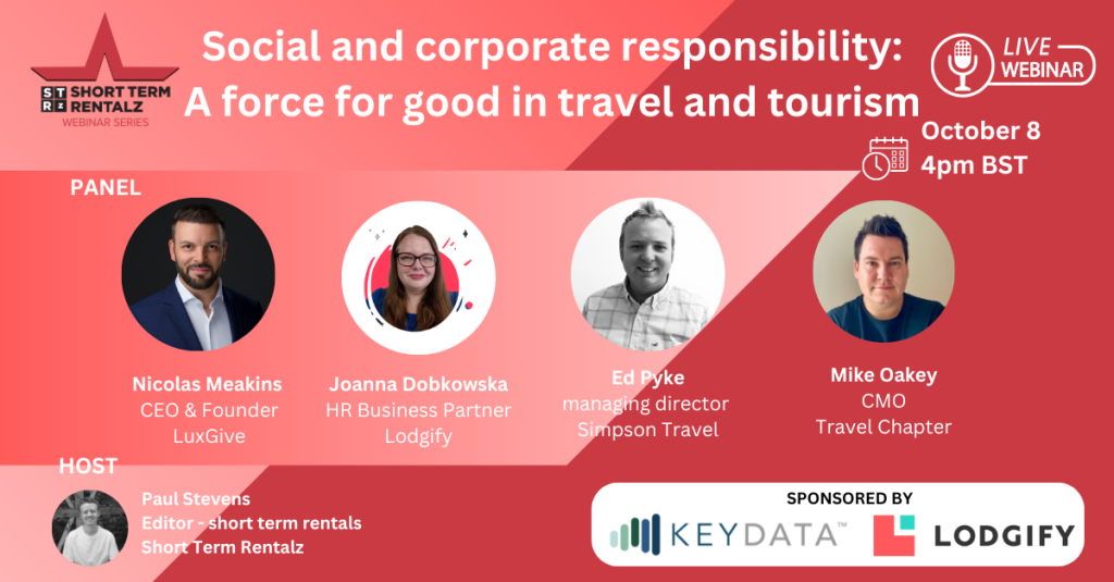 Tuesday 8 October [4pm BST] – Social and corporate responsibility: A force for good in travel and tourism [Sponsored by Key Data and Lodgify]