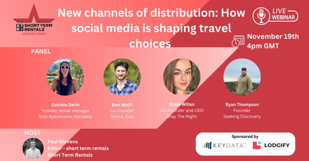 Tuesday 19 November [4pm GMT] – New channels of distribution: How social media is shaping travel choices [Sponsored by Key Data and Lodgify]
